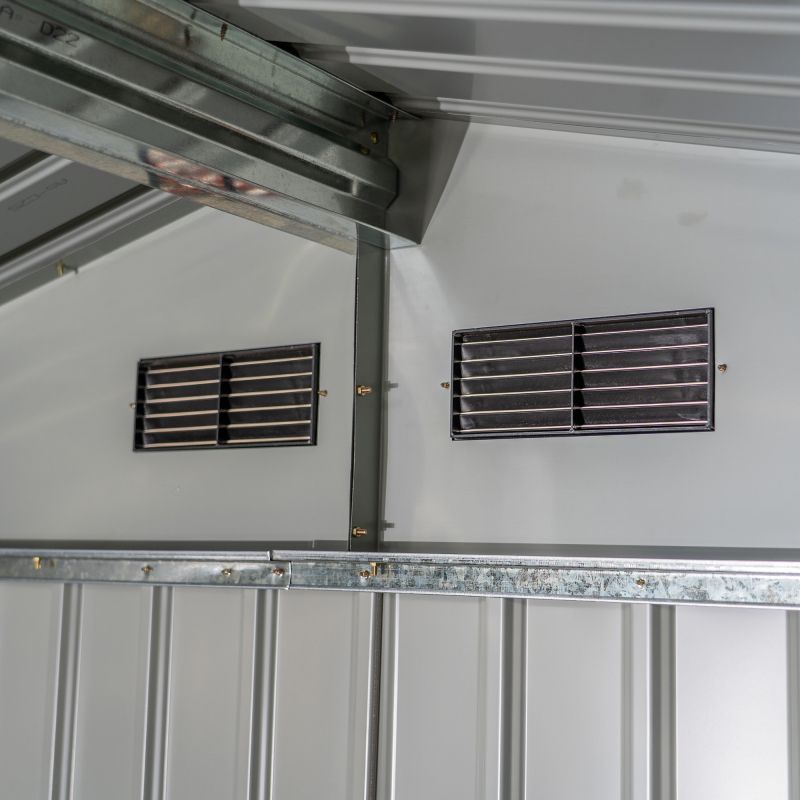Construcția robustă, obținută din oțel galvanizat și cadru din oțel zincat galvanizat la cald, cu grosime de 0.5 - 0.8 mm, fac din această căsuță un spațiu suficient de generos pentru depozitarea în condiții de siguranță a diverselor utilaje, unelte sau lucruri, fără a mai aglomera alte spații din gospodărie.